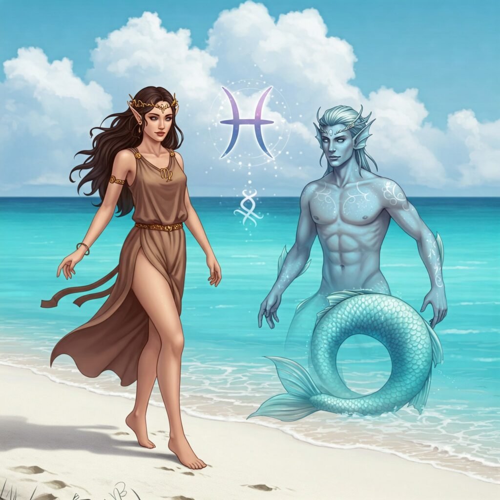 В срещата на логиката и въображението, сетивното и интуитивното, рациото и емоциото, ще победи любовта, ако партньорите успеят да се разберат един друг. Тази зодиакална двойка е благодатна за продължителен съюз, но въпреки това представителите на тези знаци не се събират толкова често, защото трудно достигат до момент, в който се разбират. Рибите затаяват доста неща, които Девите биха „чоплили“, ако се изнервят на ситуацията, в която са поставени. Представителите на Рибите не винаги харесват, че Девата подхожда към тях сякаш се опитва да ги разглоби и да види от какво са „съставени“, за да разбере коя е повредената част.