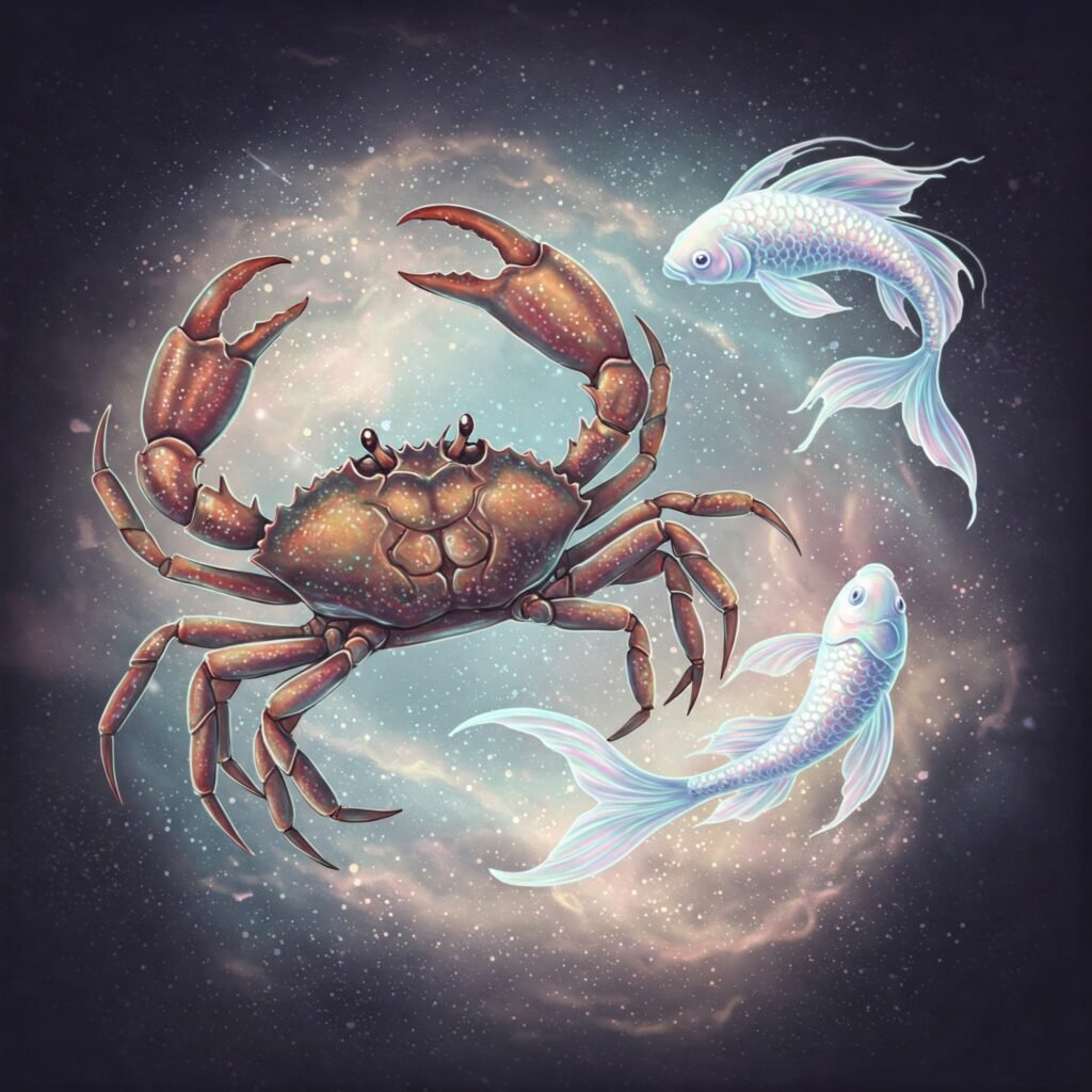 Има много добри предпоставки за взаимна любов между представителите на тези зодиакални области. Раците и Рибите много лесно намират общ език. Разбирателството между такива натури почти винаги е страхотно, дори и да не си бъдат интимни партньори. Тези личности си приличат по дълбоката душевност, съпреживяването, въображението. И двамата партньори са чувствителни и емоционални. Те умеят да разбират своите болки и мечти, както никой друг не може. Хармонията при тази двойка укрепва още повече с времето. Пречка да бъдат заедно би могло да бъде несъразмерност в нивата на съзнание, но тогава е възможно и въобще да не се свържат във връзка. Дори и тогава обаче, в енергиен план може да са си симпатични.