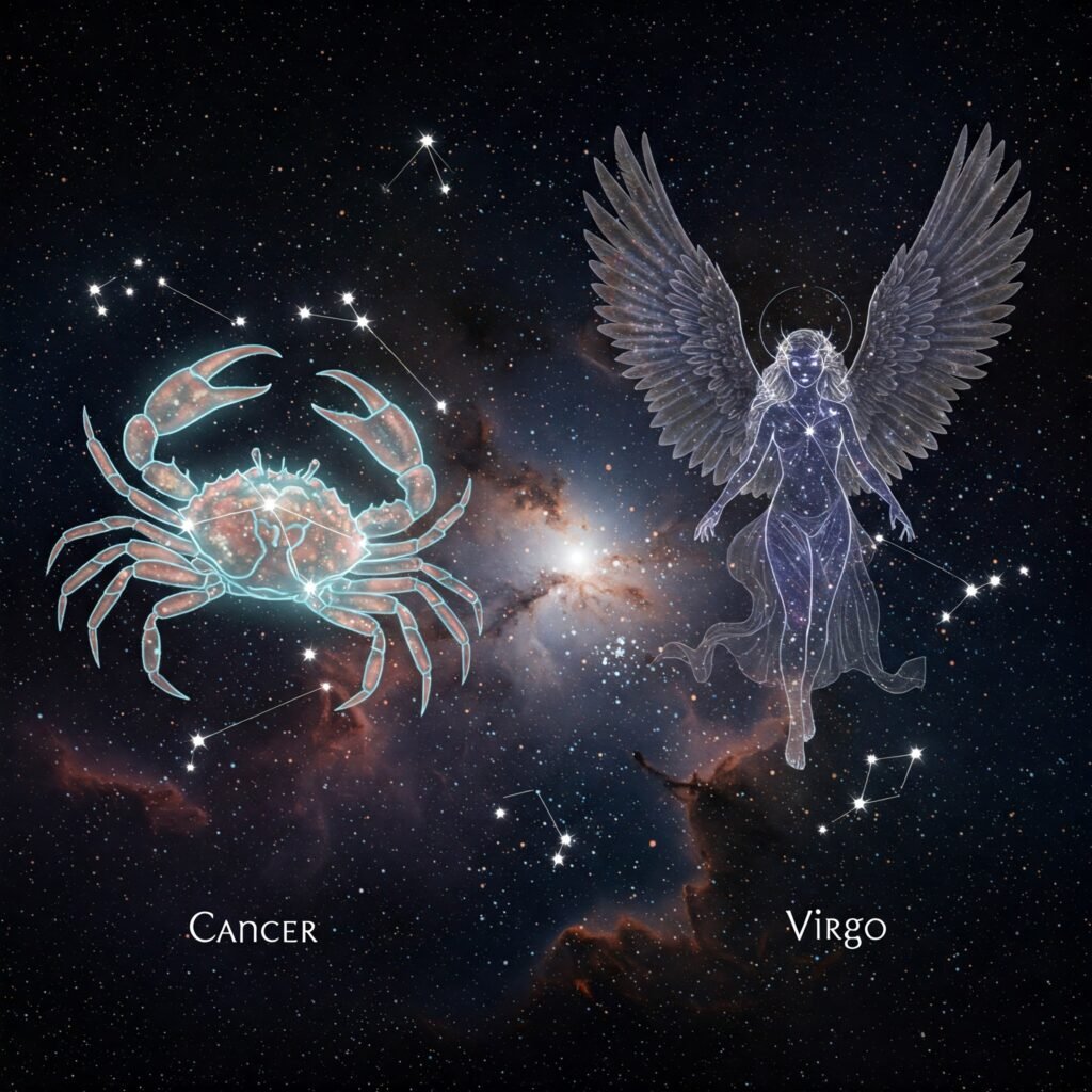 Тази двойка е от често срещаните. Лесно хлътват един по друг. Представителите на Девата се нуждаят от фиксирано пространство, рамки, които определят работата им и всяка дейност от ежедневието им, включително и дейностите с партньора. Повечето от Девите се съгласуват добре с желанията на Рака по отношение на домашния живот. Това се оказва прекрасно и за двамата. Щом им хареса нещо, Девите започват да полагат много усилия за него, изпипват нещата. При положение, че е налице разбирателство по основните въпроси, привличането между тези партньори обикновено прераства в нещо много красиво.