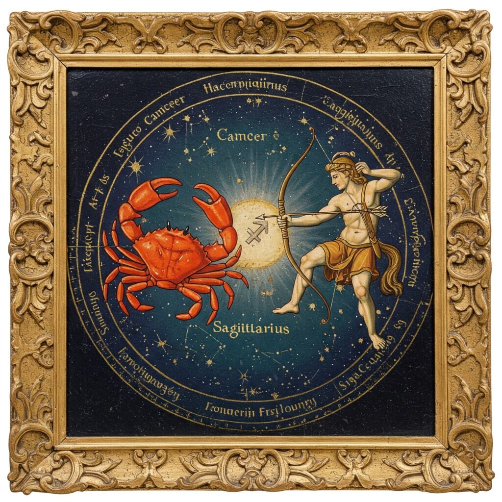 Това е друга от рядко срещаните двойки или поне, когато се кaсае за типичните техни представители. Личностите са толкова уникални, че е напълно възможно да се срещне представител на Рака –пътешественик, приключенец и представител на Стрелеца- домошар.