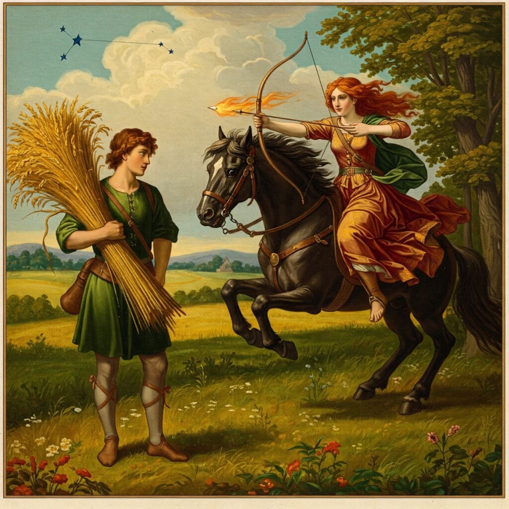 Стрелецът вижда добре големите идеи, високите идеи, далечните , абстрактни идеи, които му дават смисълът да върви напред. Девата вижда добре малките идеи, фрагментите и тяхната структура, необходимостта от много труд за реализация на всичката работа по тези идеи. Стрелецът е небрежен по отношение, на това, което за Девата е ред и е прекалено абстрактен, налудничав и агресивен на моменти. Девата е спокойна и търси реални контури на нещата, с които си обяснява света, за да може да работи в някакви граници.